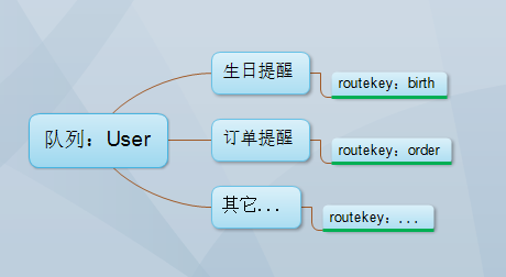 示例说明:比如一开始创建了一个用户队列:User :用它发送存储用户的注册信息队列