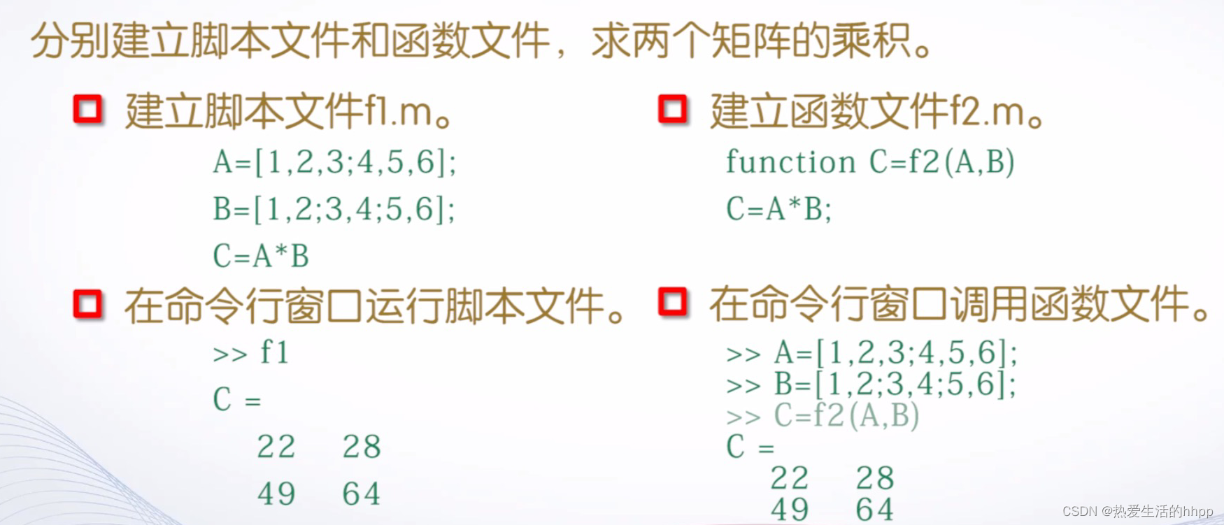 脚本文件可以直接在命令窗口运行,函数文件应以函数调用格式使用: