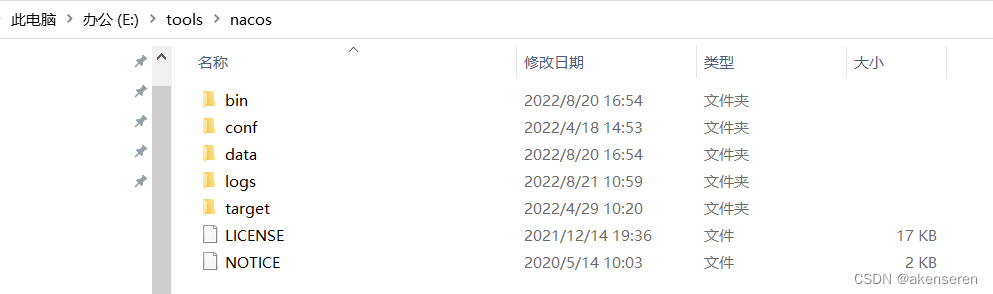 当nacos运行起来之后,还会有data、logs