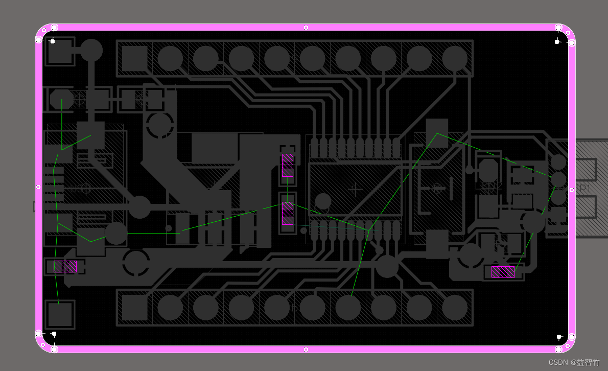 top层铺铜好了之后再对bottom层进行,可以直接ctrl+c复制,记得点一下原点,快捷键EA粘贴到当前层。再进行浇注,对一些线进行完善。。。