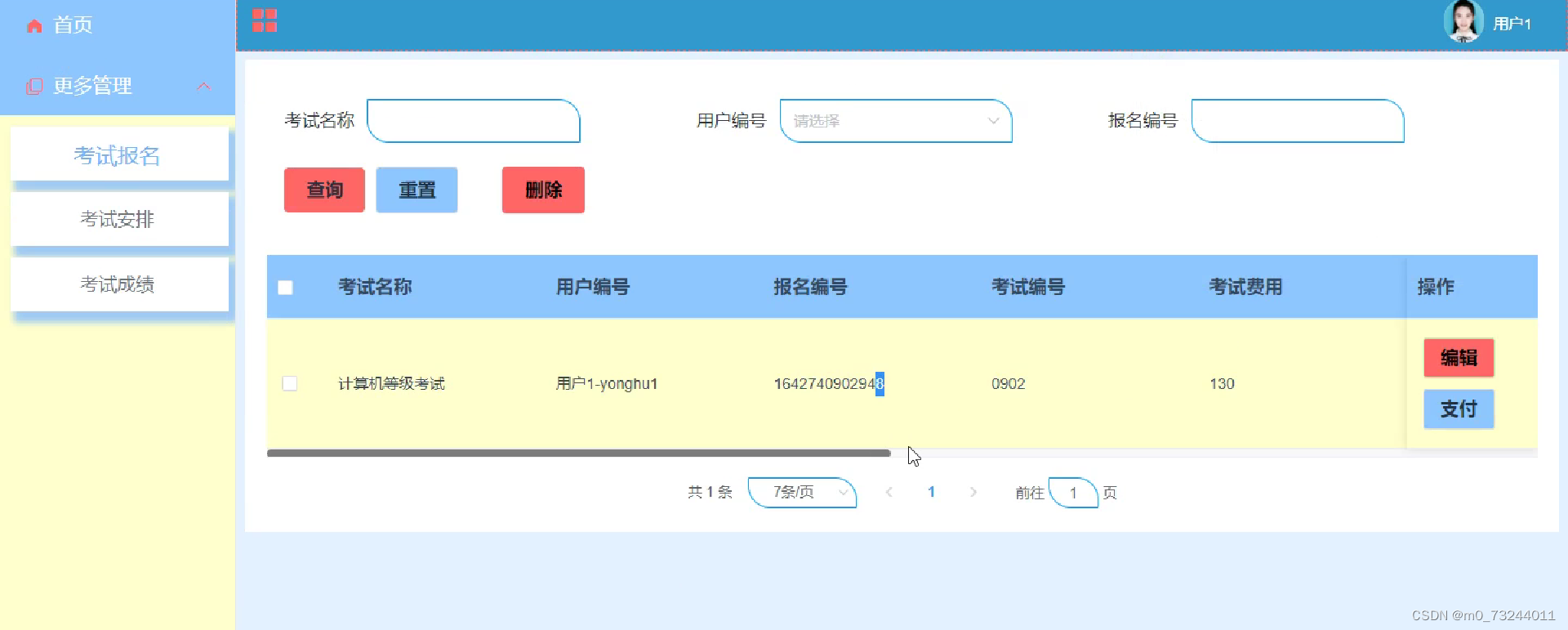 考试报名管理模块:考试报名管理分为考试添加、修改。考试报名信息由管理员进行修改、添加、删除操作。