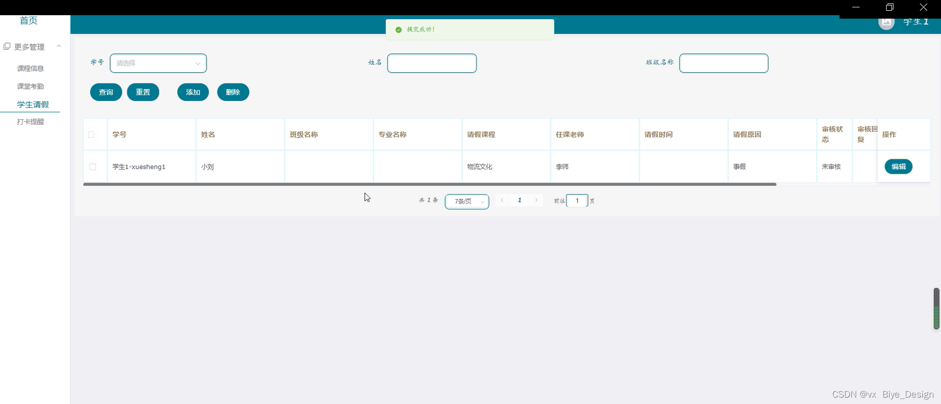 图5-12学生请假管理界面图