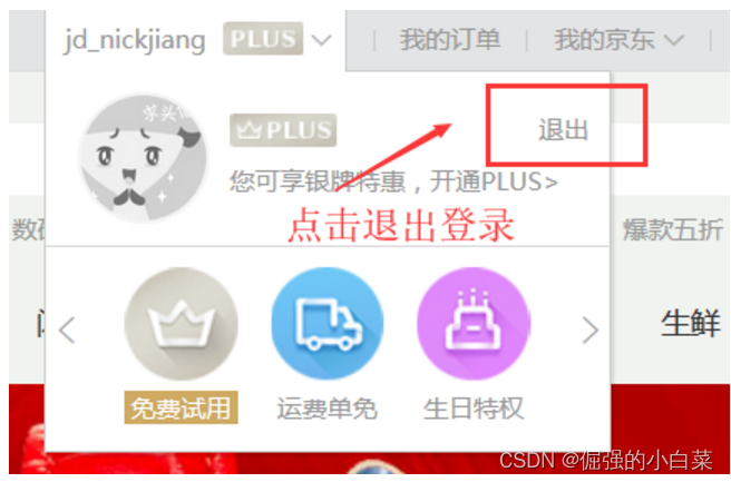 2.首页退出登录: