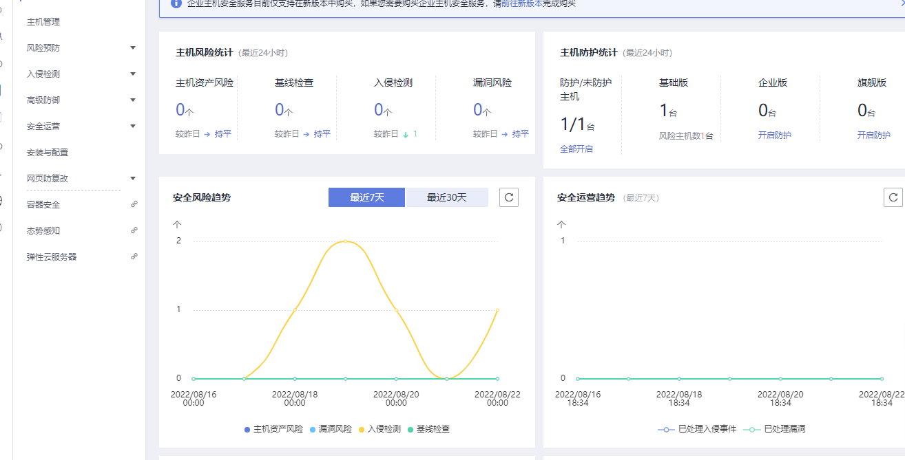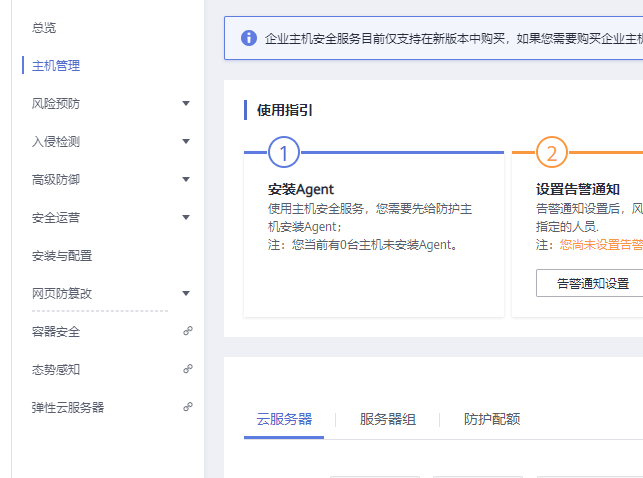 购买企业主机HSS,搜索hss第一个,购买之后进入主机安全