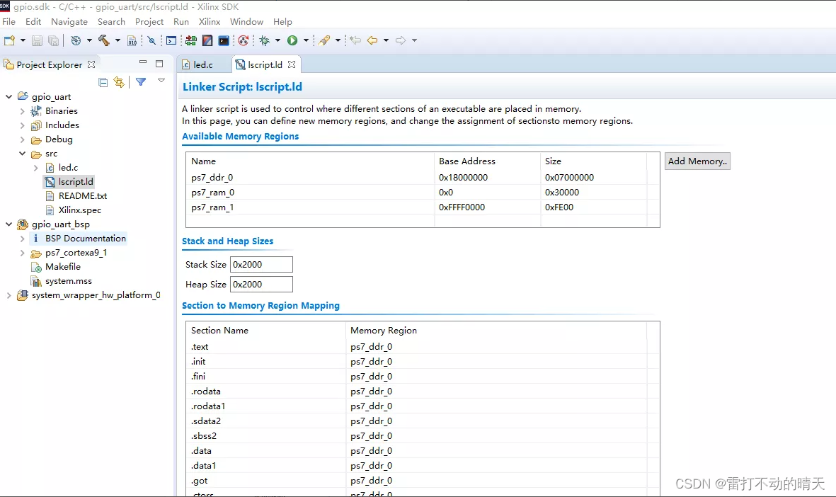 修改 lscript.ld 文件中的内容,Base Address 和 Size 要和设备树 中 dbox_ipc_dev_instance 保持一致。