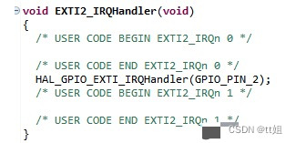 打开stm32f1xx_it.c文件,找到中断服务函数,它调用了GPIO中断服务函数。