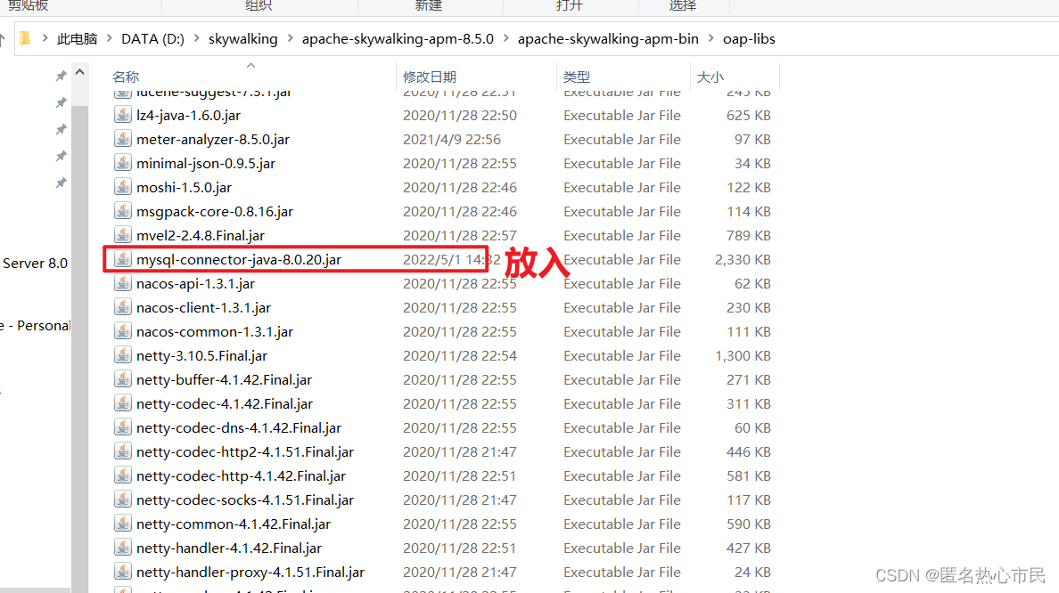 他是没有带Mysql的jar包的,需要自己下载并放入