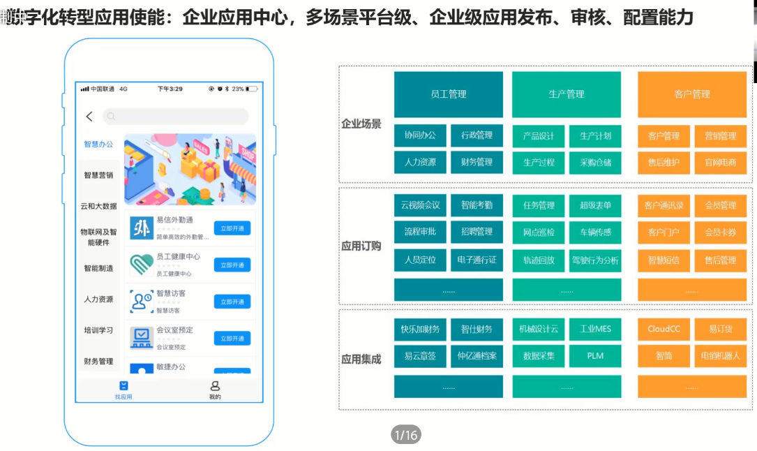 - 应用使能:企业应用中心,多场景平台级、企业级应用发布、审核、配置能力