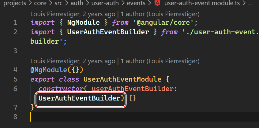 UserAuthEventModule 被 UserAuthModule 所 import:
