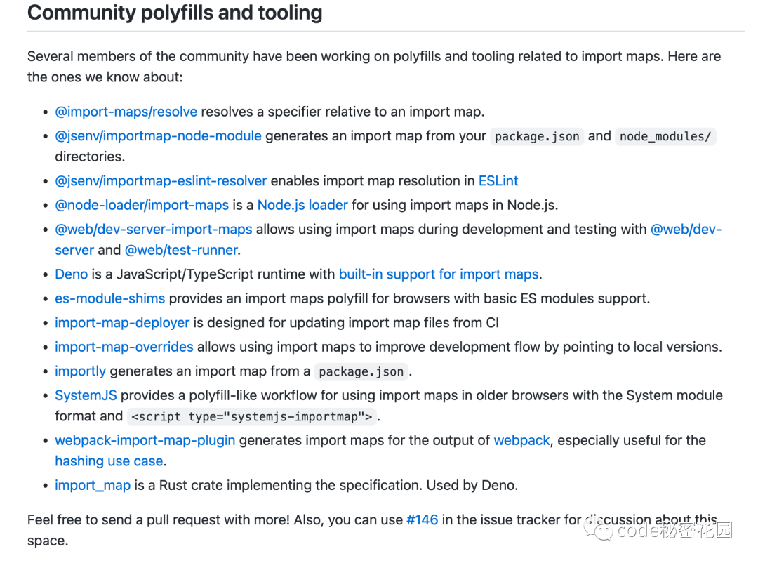 另外官方也推荐了一些其他 importmap 相关的 polyfill 和工具: