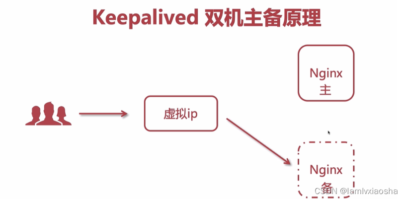 前面几小节,我们通过Keepalived和Nginx实现了双机主备的高可用架构,在这样的高可用架构理面,我们是有一主一备两台计算机节点,其中一台主机发生了故障,我们的虚拟IP会和另外一台备用机的IP绑定到一起。这样的话,用户就会不间断的来访问我们的服务器内容。但是在使用这样的双机主备的高可用架构的时候会存在一个问题。