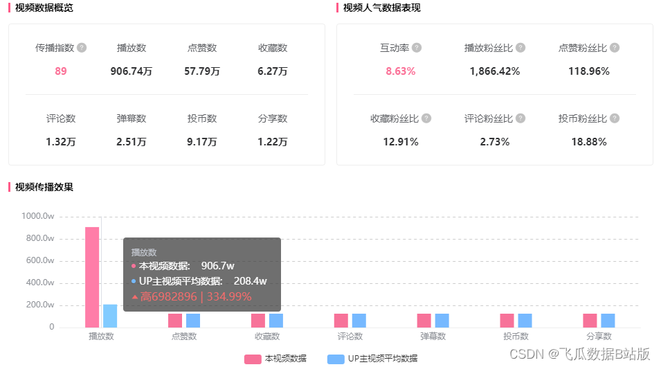 但更值得关注的是这支视频还是一支和哈啰电动车合作的恰饭视频,UP主以48.6w的粉丝基数在B站创造了1866.42%的超高播粉比,播放量更是超900w,一键三连均破万数,让行业、平台看到小UP主所迸发出的带货能力。