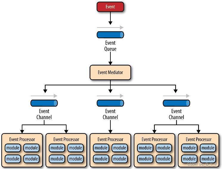 ④、事件处理器(event processor):实现业务逻辑,处理完成后会发出事件,触发下一步操作。