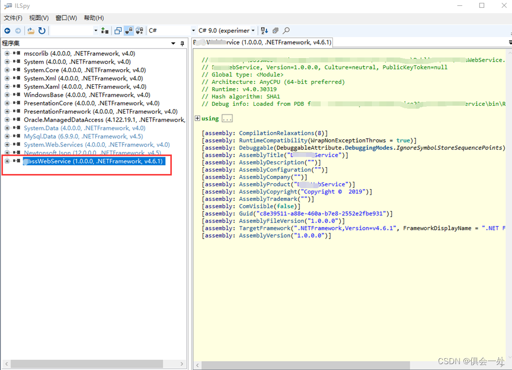 该文件显示在ilspy中,右侧栏中显示其主要信息: