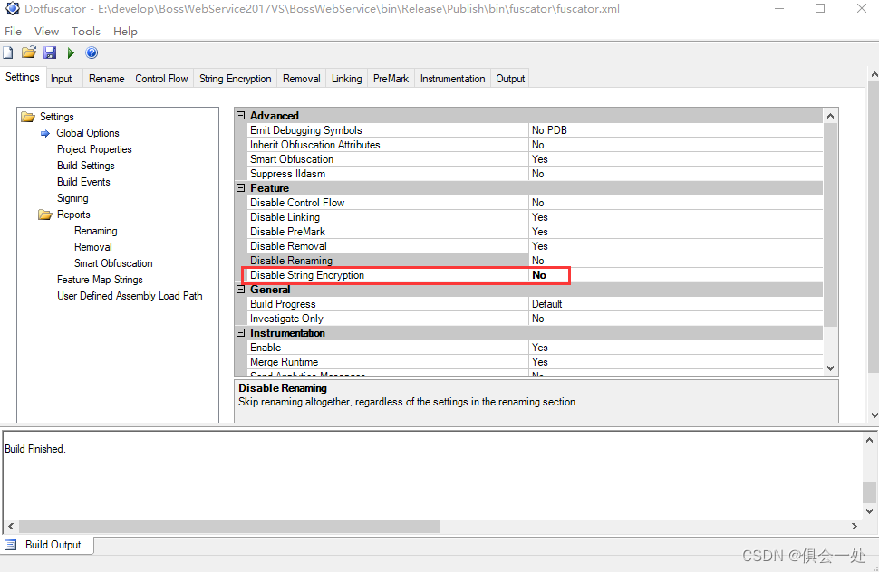 在Setting标签中将Disabled String Encryption设置为No,允许对字符串进行加扰。