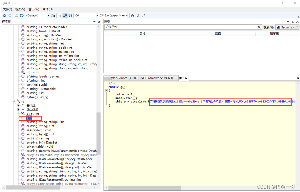 再用ILSpy打开混淆后的dll文件,已经难以找到相关类的信息,即使根据原代码的结构特征找到相关类的混淆后的代码,也是面目全非,无法识别了。