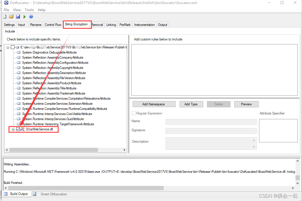 进入String Cryption标题指定字符串加密的范围。如下图。
