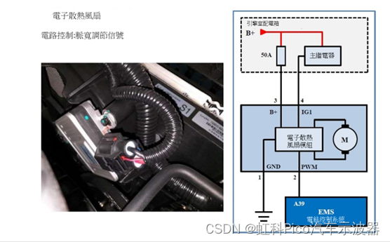 技师拔下散热器风扇的连接器并测量Pin 3 & 4的电源,测量到正常的电压将其标记为OK,根据配线图说明这是良好的。然后对4条线做了通路测试,结果也都可以,通路也都正常。结论是什么?更换新的散热器风扇,然后测试是否有作动正常?但是新的风扇还是不行,这代表我们有大问题了。这种情形将需要重新测试所有的电线,并有可能决定更换引擎ECU,因为没有其他的办法了。换上了新的引擎ECU后,散热器风扇仍然没有运作!死胡同,花费了许多功夫还有零件却没有任何结果,更不用说车子放置的时间。