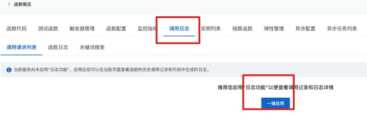 2. 部署代码并开通SLS日志服务,便于调试代码时查看日志,真的很方便 :