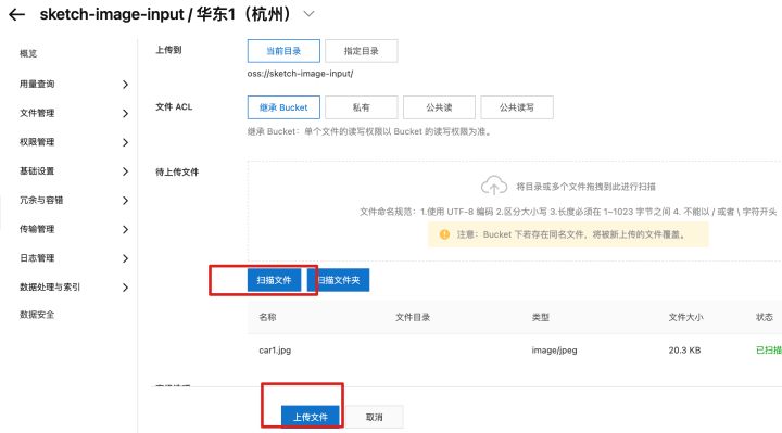 1.上传本地测试图片到OSS sketch-image-input桶中: