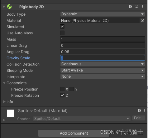 Constraints中的勾选是为了限制沿z轴的旋转。