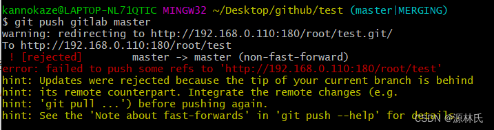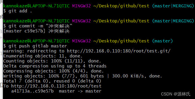 - #将远程代码合并到本地当前分支,示例:git merge origin/master