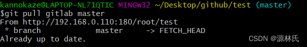 2、使用git pull获取远程代码并合并到本地(这里先不讨论合并冲突所导致的合并失败,文章后面会专门进行说明)