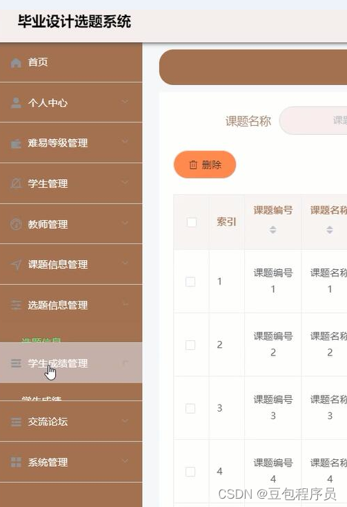 毕业设计选题系统使用Python开发,数据库使用Mysql。系统框架是基于B/S,便于管理和维护。毕业设计选题系统包括管理员、老师和学生三种用户,管理员对系统基本信息、用户信息进行管理;教师发布毕业设计选题、审核题目;学生用户查看毕业设计选题、上传自拟题目、查看通知等。