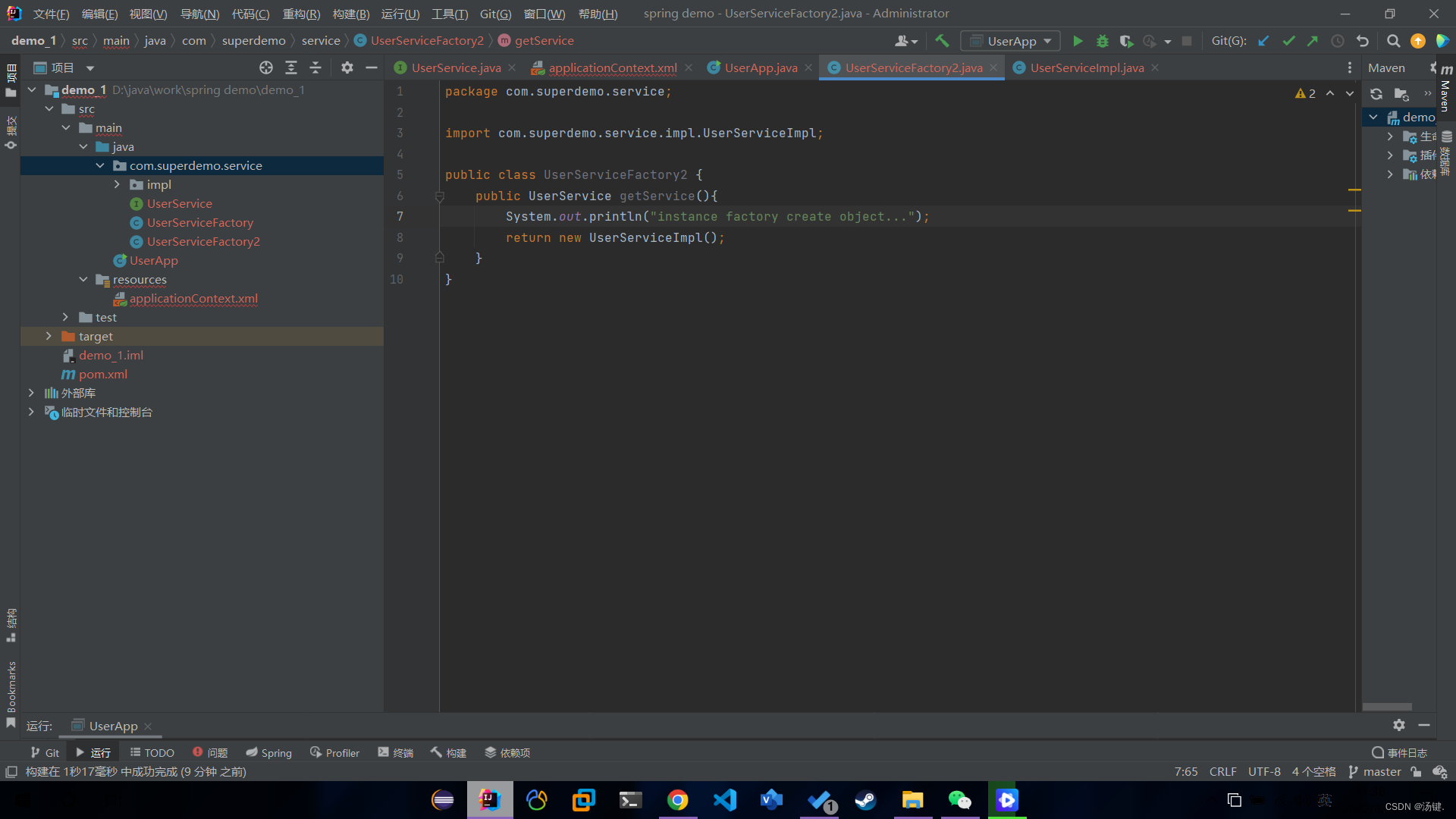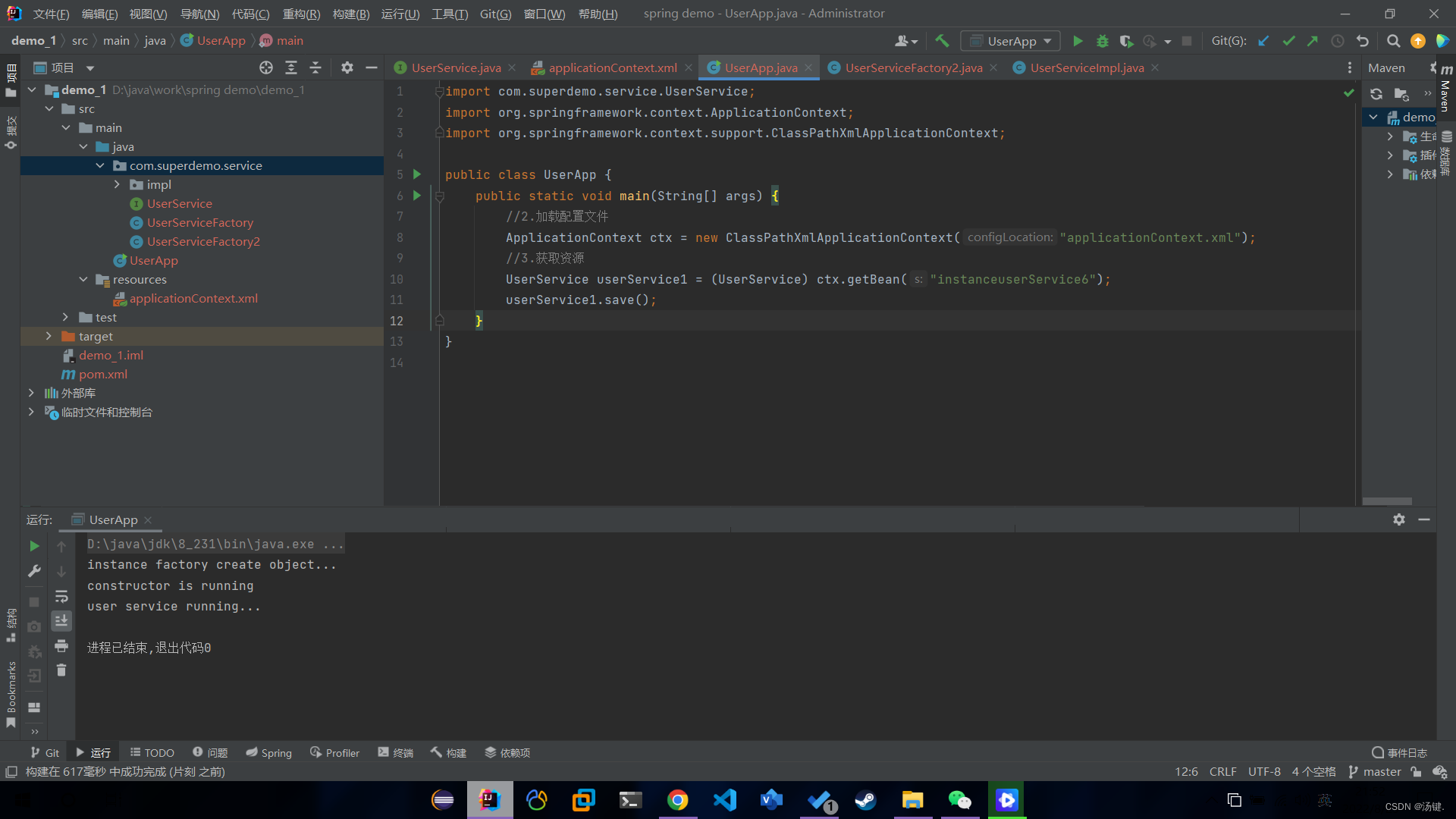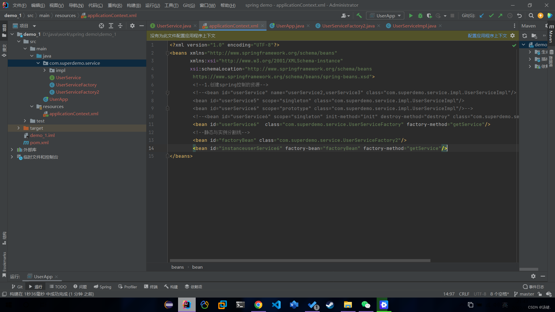 使用实例工厂创建bean首先需要将实例工厂配置bean,交由spring进行管理