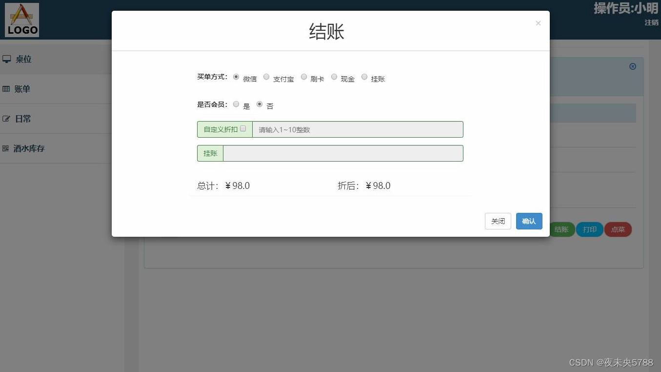 桌位模块主要是用于管理桌位的模块,包括点菜到结账的流程