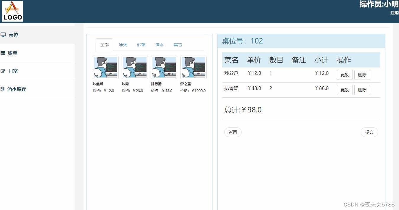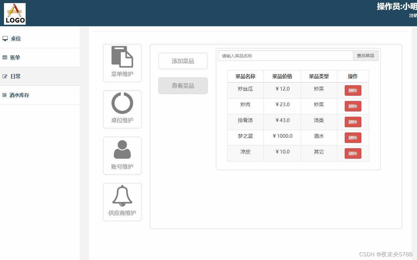 提供了桌位菜单用户供应商的配置功能,也就是增删改查