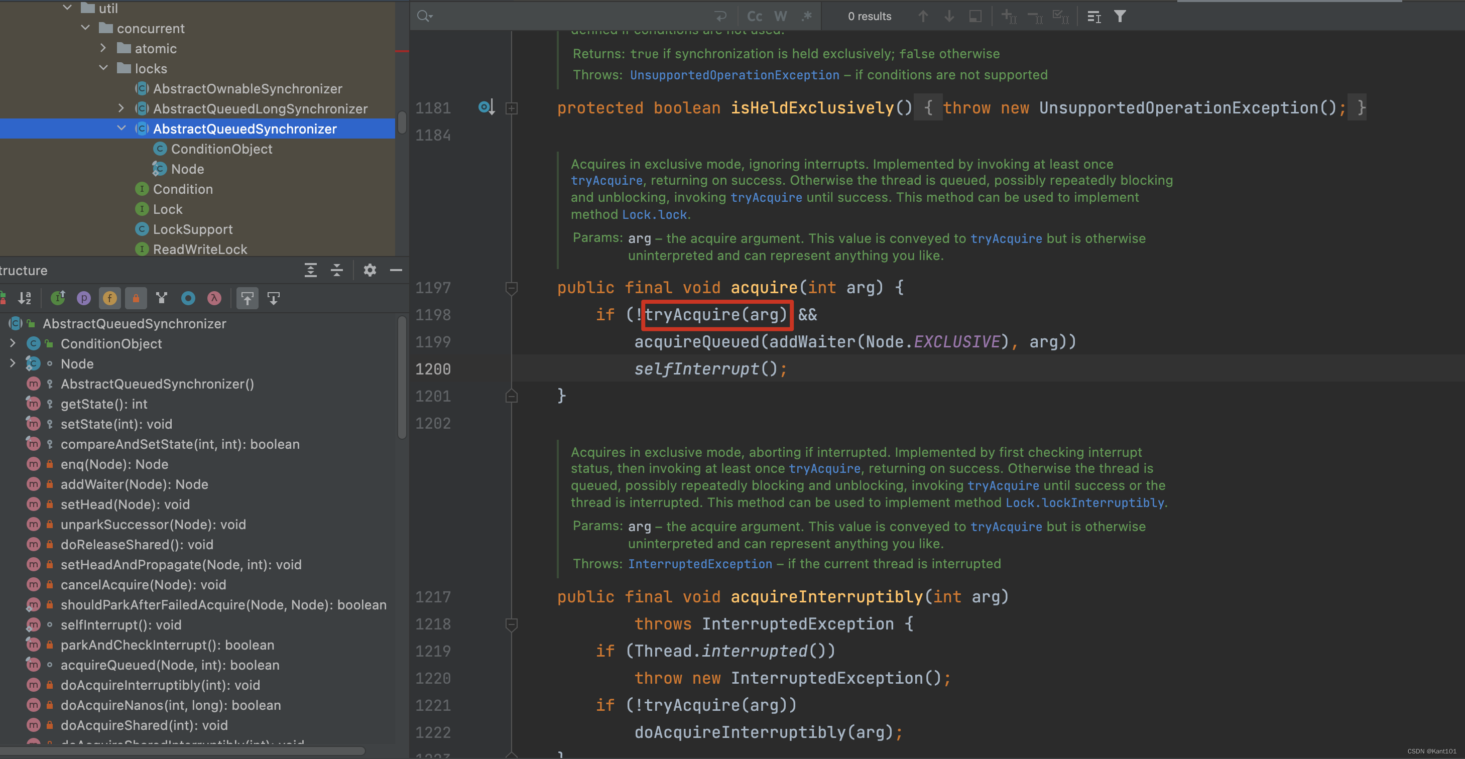 当非独占该锁的线程进入后,接着调AQS中的acquire函数