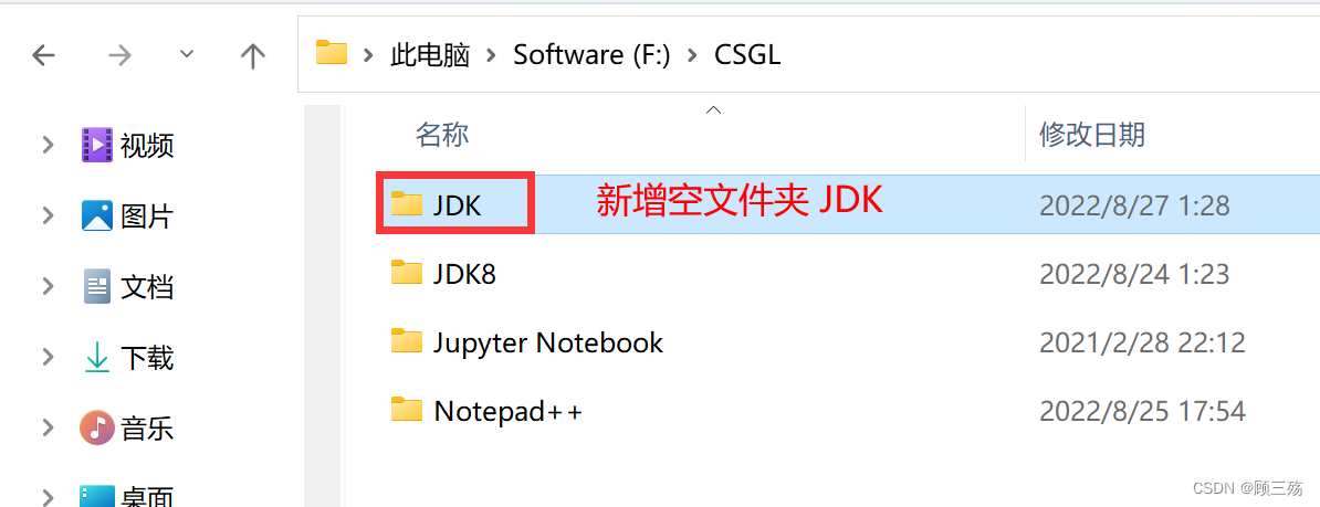 在原来的路径下,新增与原来同名的目录 JDK,同时其下新增 2 个空文件夹:jdk 、jre