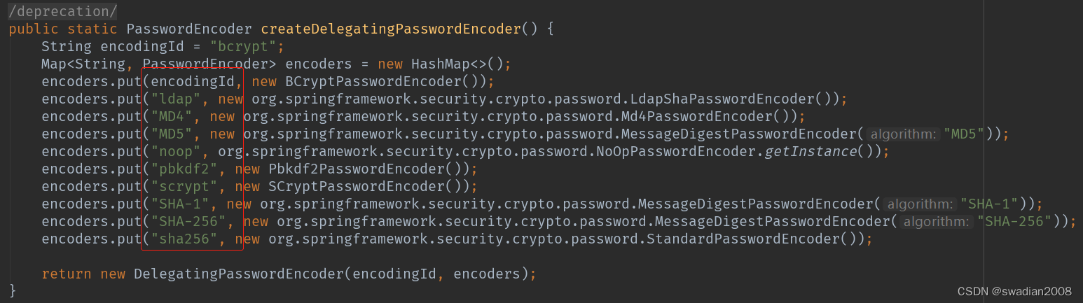 支持的加密方式可以通过 PasswordEncoderFactories.class 查看