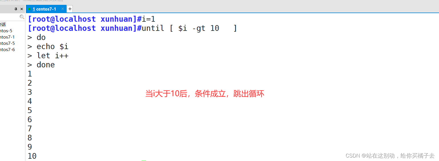 - [root@localhost xunhuan]#until [ $i -gt 10 ]