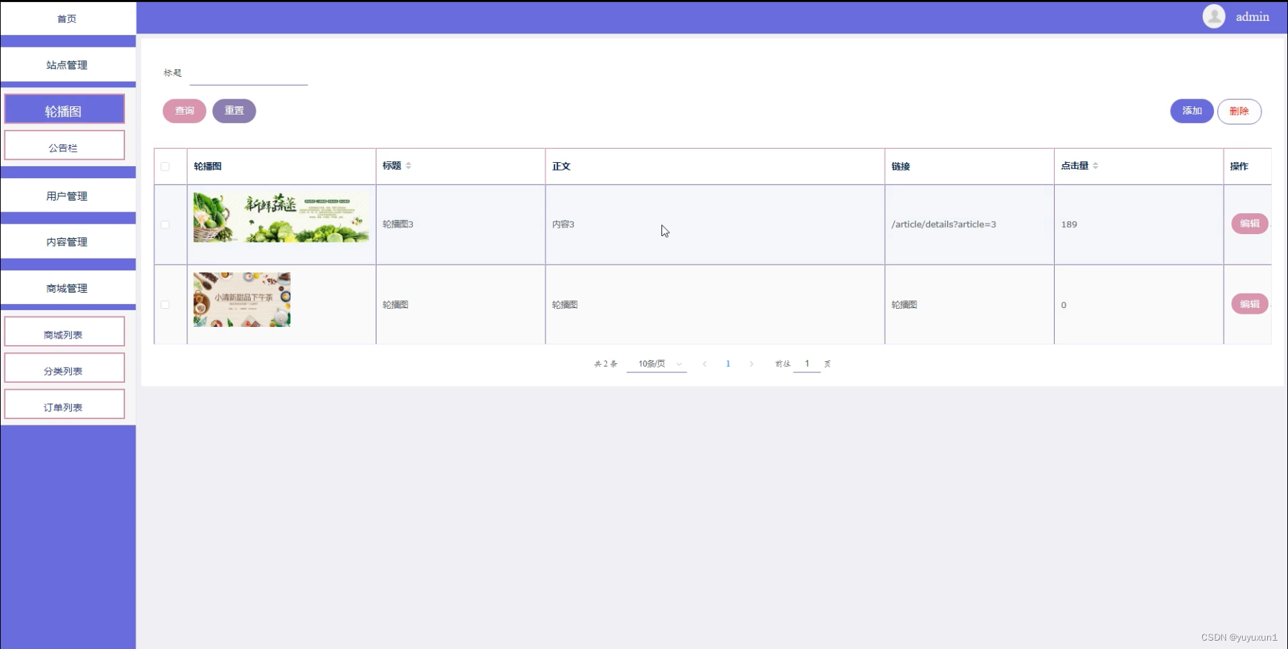 商品列表管理:对商品列表信息进行维护,添加、删除、修改信息。