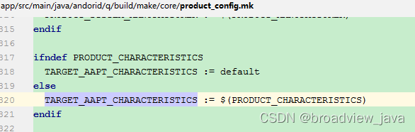 也就是ro属性的值是变量 TARGET_AAPT_CHARACTERISTICS定义的,接下来看看它是定义的地方: build/make/core/product_config.mk