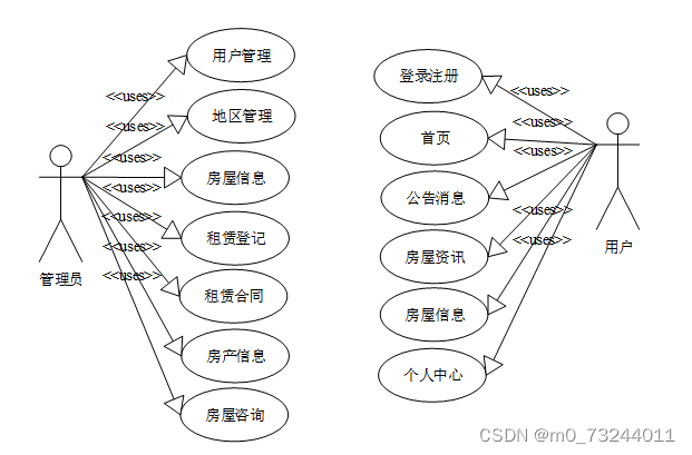房屋出租管理系统总体分为前台用户模块和后台管理员模块。