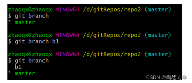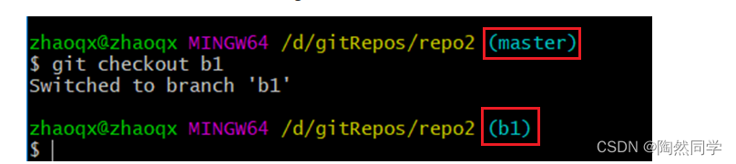 注意:在命令行中会显示出当前所在分支,如上图所示。