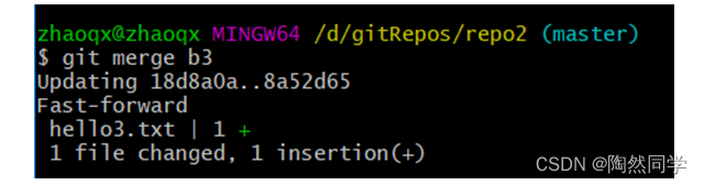 合并分支就是将两个分支的文件进行合并处理,命令格式:git merge 分支命令