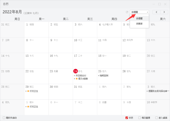 2:在日历视图上,点击右上角选择查看内容方式为“按提醒”。