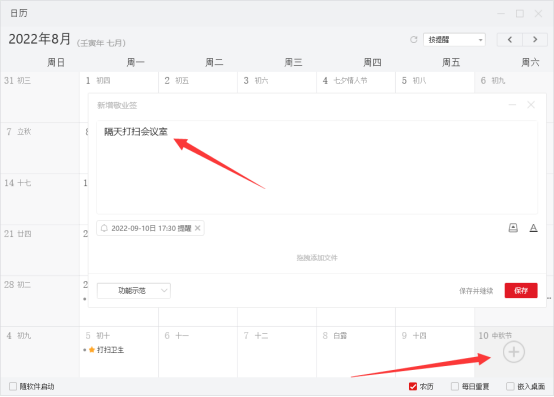 3:点击需要新增提醒的那一天的日期,在弹出的新增事项弹窗里,输入事件文本描述。