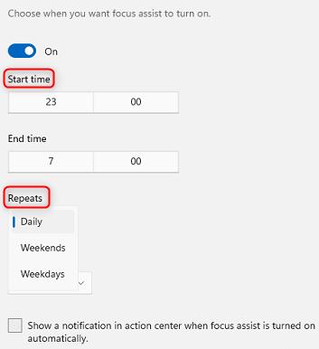 第 8 步:您可以提供不希望收到通知的时间。您还可以选择时间的频率,无论是每天还是仅在周末或工作日。