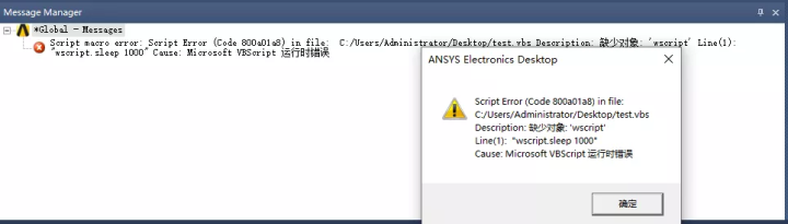 单独运行时正常可用的,但是在HFSS中Run Script发现如下图所示报错现象: