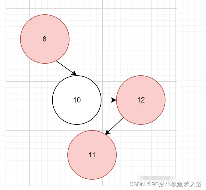 然后祖父节点10进行一次左旋。最终到了下图所示的状态,这个是满足红黑树的性质的。