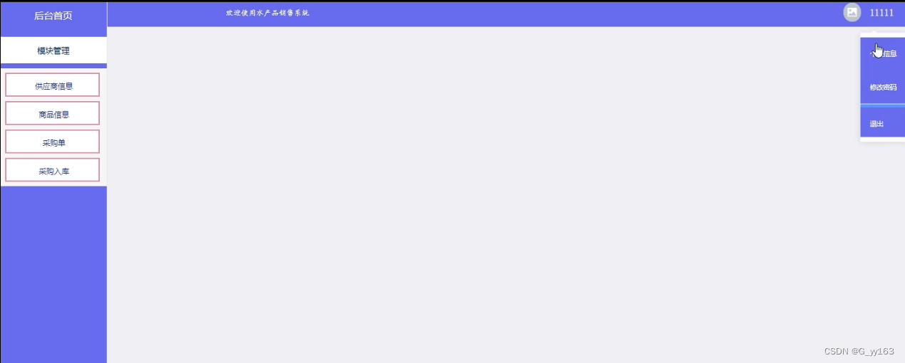 系统界面简洁大方,布局合理,易操作易上手。对应用户的每一步操作,系统都能高响应地做出反馈。系统具体包含对用户的管理、销售单、供应商信息、客户信息、商品信息、采购单、采购入库、销售出库等功能,为水产品销售系统提供一个管理平台,实现对数据地高效、安全地管理。