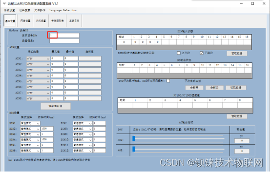 点击左上角的系统设置—读取配置,我们先读取下设备的配置和参数。