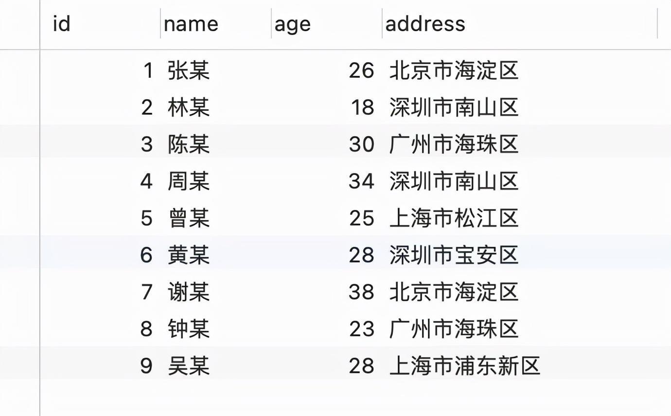 - select id from t_user where name="林某";
