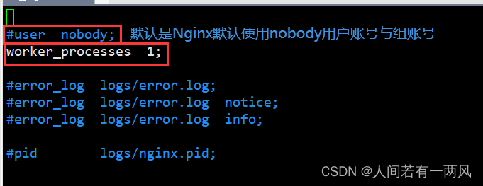 - #默认是Nginx默认使用nobody用户账号与组账号
