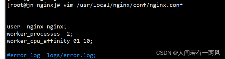 worker cpu affinity 0110;表示开启两个进程,第一个进程对应着第一个CP U内核,第二个进程对应着第二个CPU内核。